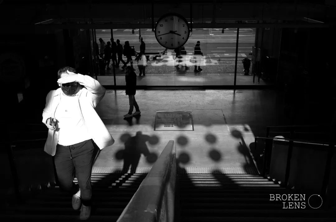 依著何藩舊照,來到中環街市的實景。光線正好,拉長了每個人的影子。回翻何老先生的照片,發現時鐘同樣定格在了午后三點八。沒有預演,沒有等待,巧合地被同一個瞬間擊中。